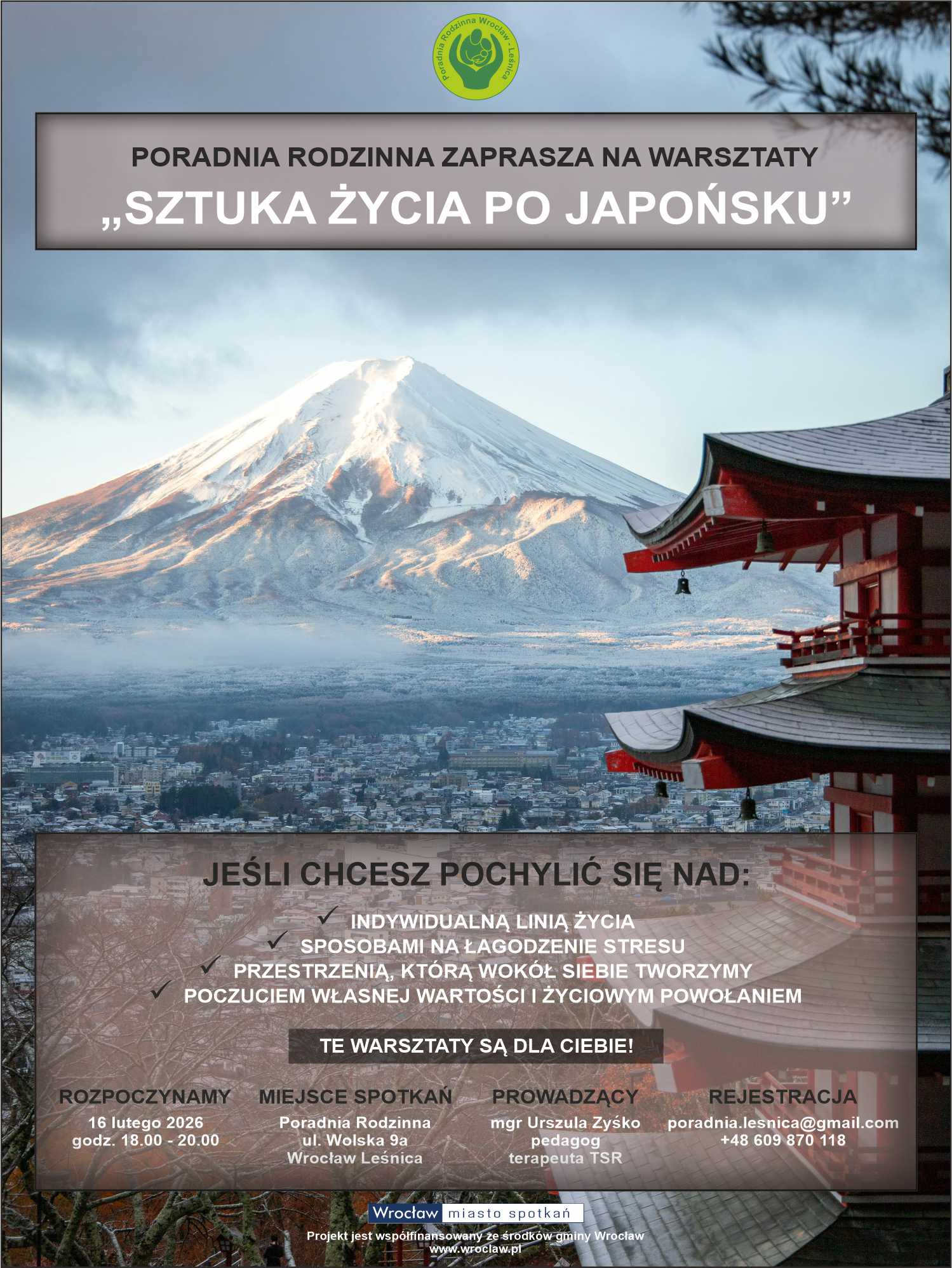 Zapraszamy na warsztaty „Sztuka życia po japońsku.”, które skierowane są do osób dorosłych, na każdym etapie życia. Mają charakter psychoedukacyjny, rozwojowy, ale również profilaktyczny, w kontekście zdrowia psychicznego.